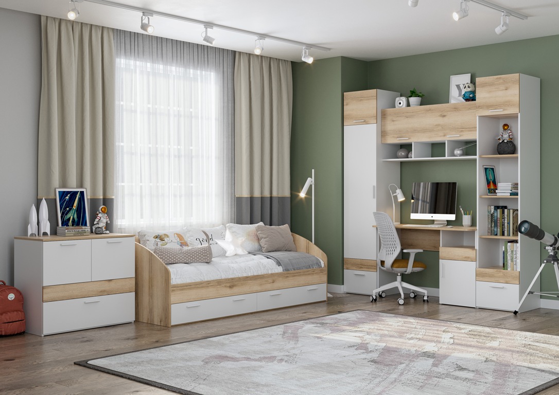Модульная коллекция мебели "Геометрия" выполнена в молодежном, современном стиле и подходит для широкой возрастной аудитории. Данная коллекция мебели воплощает атмосферу гармонии, уюта и создает бесконечный полет мыслей в комнате вашего ребенка