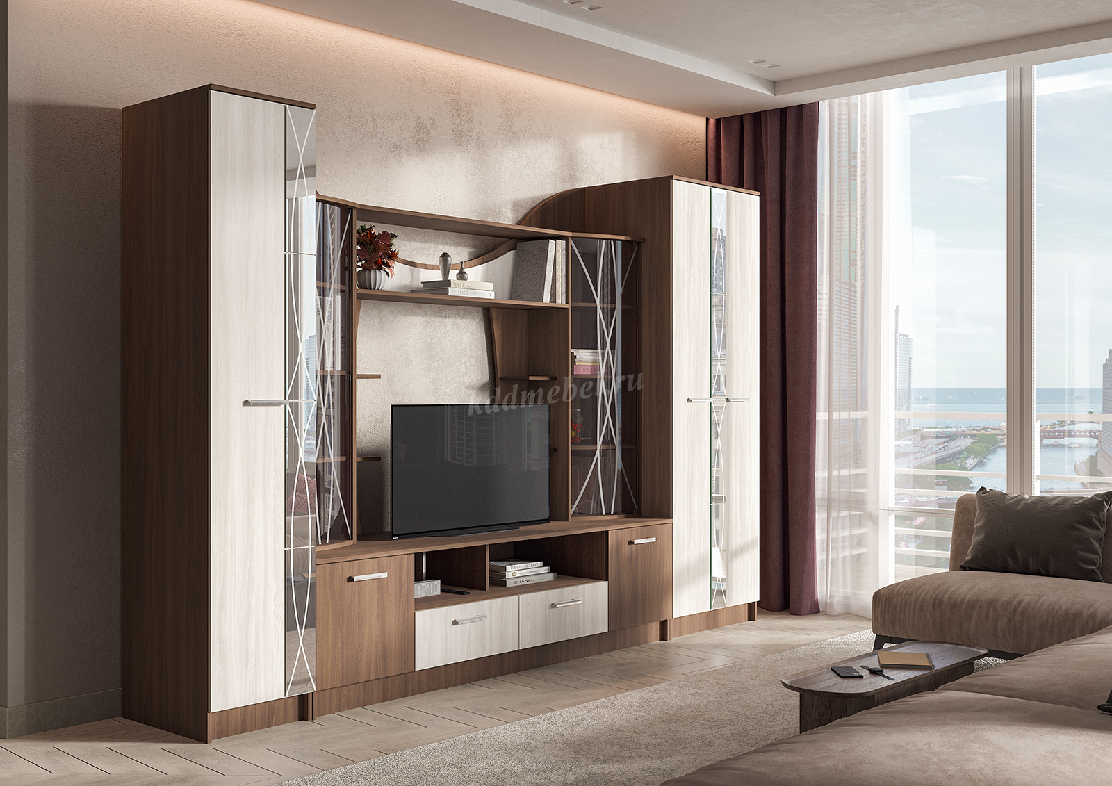 Модульная гостиная Ольбия поможет со вкусом обустроить уютное помещение, где вы сможете с удовольствием проводить свободное время.
