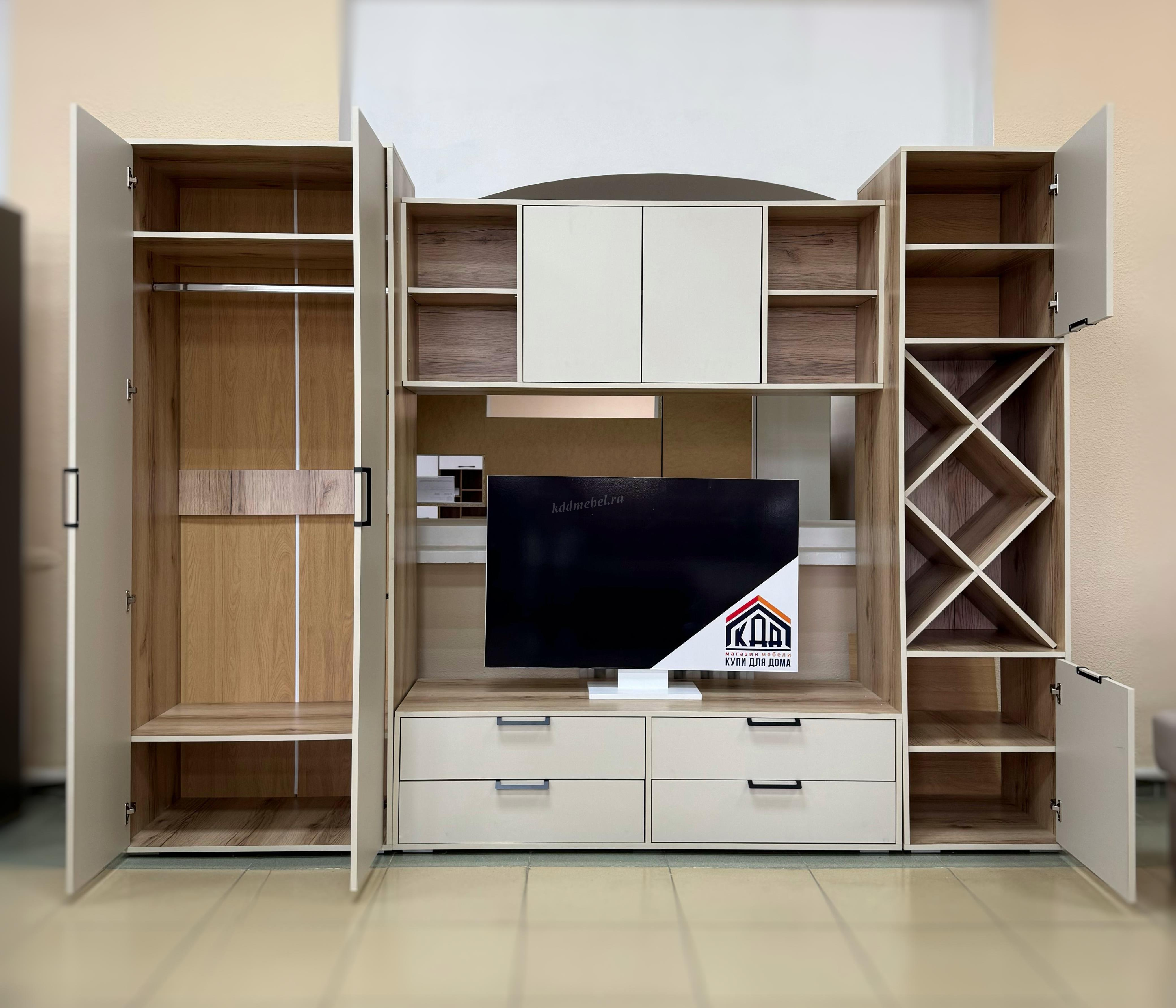 Описание Гостиная Оливия (Дуб делано светлый/Сатин)