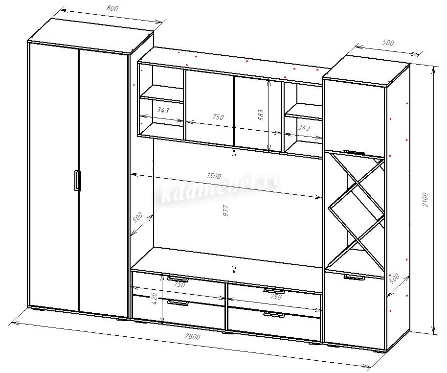 Ниша под ТВ, мм (ш х в):1500х977