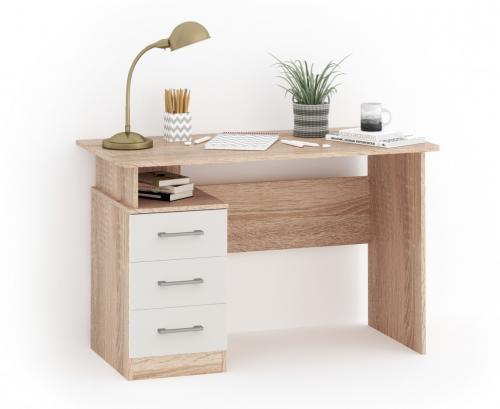 Стол письменный Гарвард 120 3 ящика (Дуб сонома/Белый)
