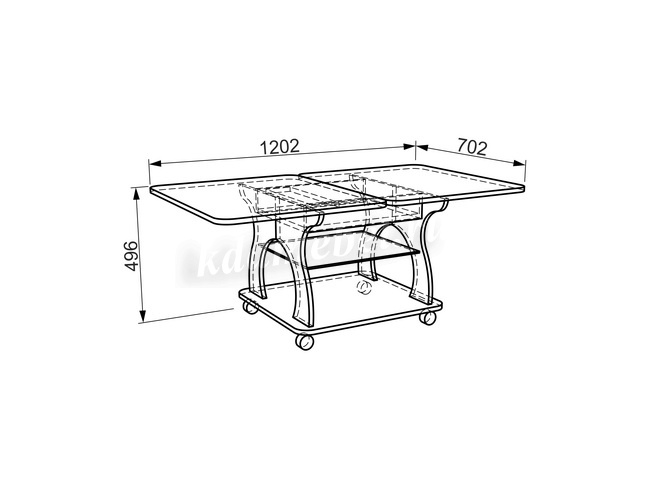 Стол журнальный раскладной "Купер" имеет прямоугольную форму с чуть закругленными углами крышки стола. Это раскладная модель, что позволит вам увеличить размер журнального стола в два раза. Для этого вам потребуется только откинуть одну половину крышки стола. При разложении стол получается большой, что позволит свободно усадить за него до 12 человек. Под основной крышкой стола имеется стеклянная полка для газет, книг, журналов и пультов. Интересный изгиб "ножек" придает столу оригинальный вид. Стол журнальный раскладной "Купер" на роликах, поэтому вы сможете легко и свободно передвигать его по всей комнате. г. Ижевск.